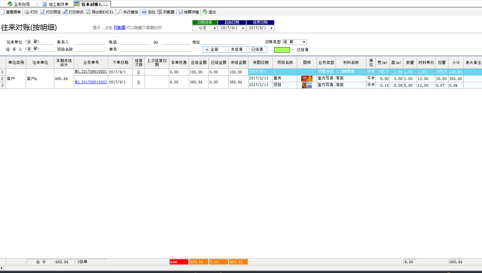 對賬時,選擇對應客戶及日期。執(zhí)行查詢過后,該時期內(nèi)該客戶所有的業(yè)務單都會顯示出來,包括單據(jù)明細、已結(jié)金額、未結(jié)金額等,已經(jīng)結(jié)清單據(jù)用綠底標記。各單據(jù)直觀明了,不會再出現(xiàn)漏單丟單或錯單的情況。