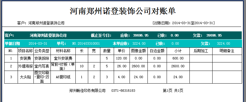 暢佳公司是一家印刷業(yè)務(wù)為主,同時(shí)又承接廣告設(shè)計(jì),加工,制作等業(yè)務(wù)的公司,有很多固定的客戶,每月都會(huì)給公司下訂單,公司需要把這么多的客戶每月的下單量,收款情況,欠款情況用軟件管起來,同時(shí)這款軟件又能方便制單,因?yàn)榭蛻粝聠螘r(shí)可能會(huì)有多種業(yè)務(wù)類型,比如一筆室外大型海報(bào)業(yè)務(wù),可能分解下來的業(yè)務(wù)就會(huì)有設(shè)計(jì)、噴繪、制作、安裝、送貨等好幾項(xiàng),公司需要一個(gè)明細(xì)賬,而不是就記一筆總賬,這就對廣告下單軟件有了更高的要求,也就是軟件在一張單中支持錄入多條明細(xì),而這些明細(xì)支持按不同的計(jì)價(jià)方式計(jì)價(jià),比如按面積計(jì)價(jià)、按數(shù)量計(jì)價(jià)、按次數(shù)計(jì)價(jià)等。同時(shí)生成的每月對賬單中必須提供客戶的業(yè)務(wù)明細(xì),做了什么項(xiàng)目,數(shù)量是多少,尺寸是多少,加工費(fèi),安裝費(fèi)是多少。這樣在與客戶對賬過程中既能保證數(shù)據(jù)明確,又能體現(xiàn)公司的管理水平,提升在客戶心中的公司形象,最終暢佳試用了飛揚(yáng)動(dòng)力廣告公司管理軟件后,功能及價(jià)格方面都很滿意,最終與公司達(dá)成合作。