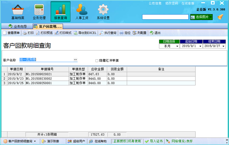 在廣告公司管理系統(tǒng)中,與客戶對(duì)賬可以分為按明細(xì)對(duì)賬和按單據(jù)對(duì)賬。按照明細(xì)對(duì)賬,就在業(yè)務(wù)處理中,打開往來對(duì)賬,選擇客戶與日期,軟件會(huì)自動(dòng)把客戶在改日期內(nèi)的嗦有單據(jù)都顯示出來,并且包括單據(jù)的總應(yīng)收金額與單據(jù)的具體明細(xì)
