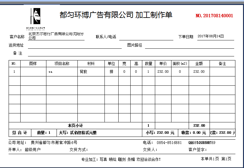 飛揚(yáng)動(dòng)力廣告公司管理軟件可以在打印的時(shí)候,加上自己公司獨(dú)有的logo、二維碼等信息。