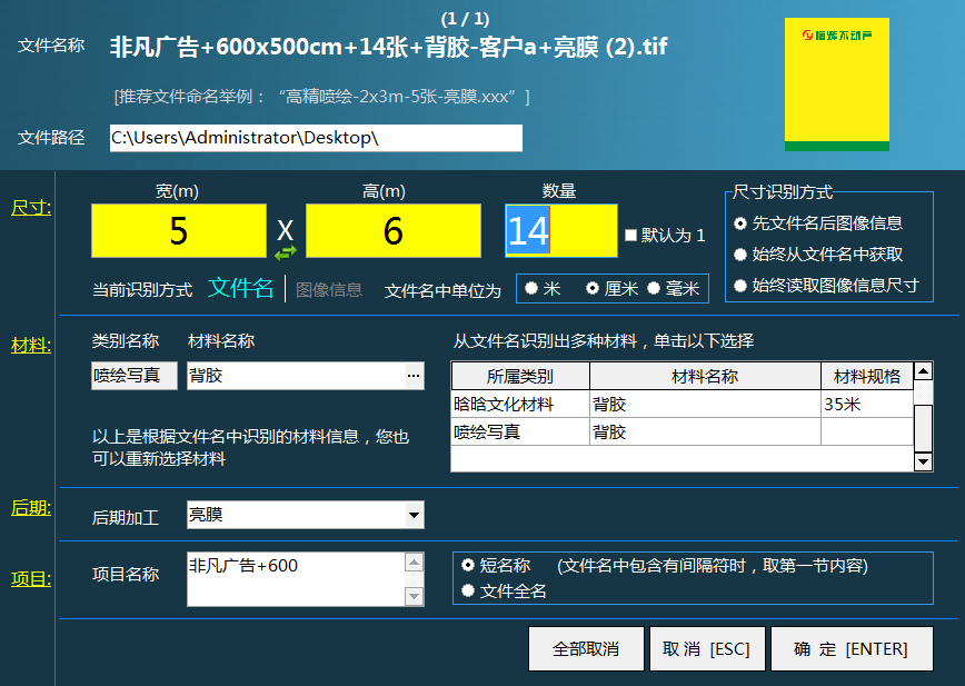 飛揚(yáng)動(dòng)力廣告公司管理軟件可以實(shí)現(xiàn)快速開(kāi)單,取代原來(lái)老的手工單模式??梢詫?shí)現(xiàn)快速開(kāi)單、快速對(duì)賬,這樣,廣告公司在后期與自己客戶(hù)的對(duì)賬中就會(huì)顯得非常的簡(jiǎn)單,廣告公司只需要將需要開(kāi)單的圖片信息,直接拖入到飛揚(yáng)動(dòng)力廣告公司管理軟件之中,軟件便會(huì)自動(dòng)識(shí)別材料信息、寬、高、客戶(hù)信息等等。實(shí)現(xiàn)快速開(kāi)單。