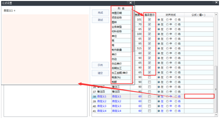 涉及到的字段為“寬”“高”“數(shù)量”“單價(jià)”“白邊”“贈(zèng)白邊”“白邊單價(jià)”“后期單價(jià)”以及自定義1234等。
