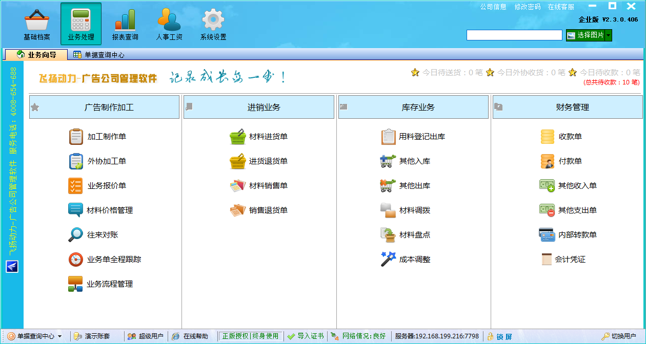 飛揚動力廣告公司管理軟件專業(yè)的廣告公司管理軟件,性價比是同行軟件之中最高的, 采用加密狗的方式加密保障你的數(shù)據(jù)安全。簡單快捷的操作方式,清新簡約的操作界面。