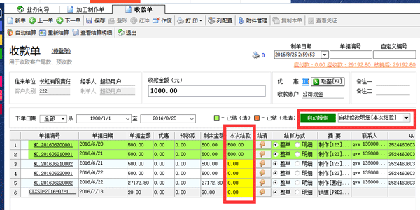 當某一行的“剩余金額”與“本次結款”相等時則標為結清狀態(tài),以綠色背景顯示。