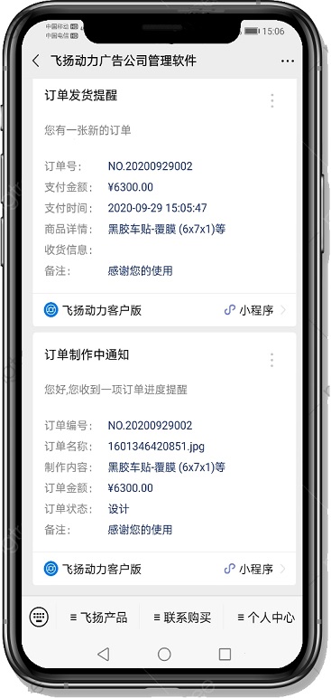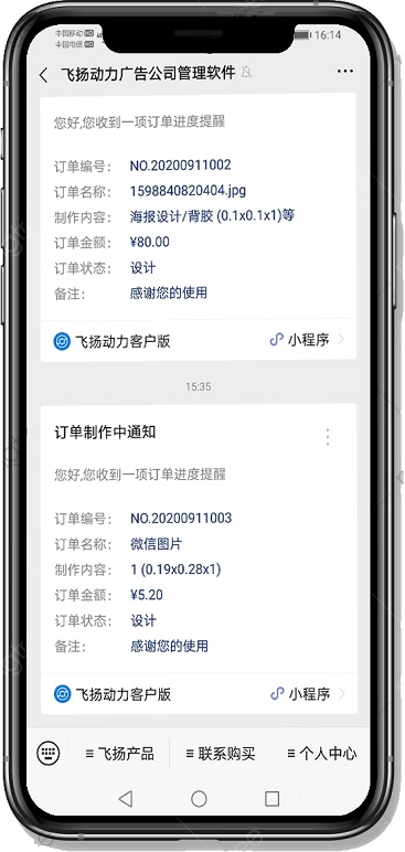 廣告公司開單后,消費(fèi)者可以通過公眾號實(shí)時(shí)接收到訂單信息,了解自己訂單情況,提高客戶體驗(yàn)。